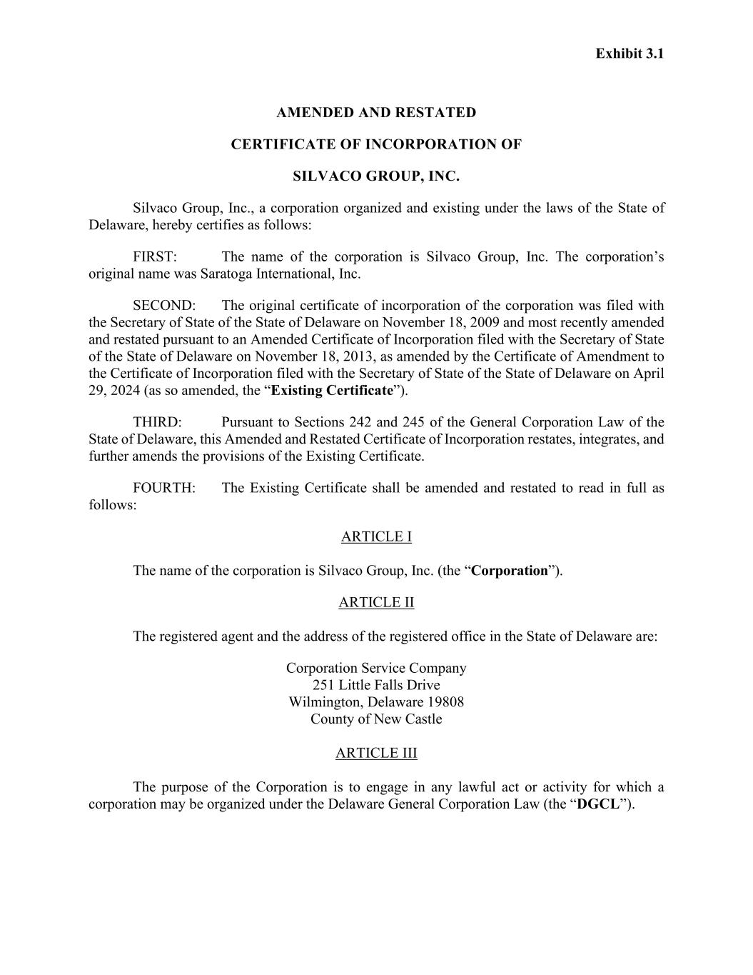 1 AMENDED AND RESTATED B Y L A W S OF SILVACO GROUP, INC. (a Delaware corporation) ARTICLE 1 Offices 1.1 Registered Office. The registered office of Silvaco Group, Inc. shall be set forth in the certificate of incorporation of the corporation. 1.2 Other Offices. The corporation may also have offices at such other places, either within or without the State of Delaware, as the board of directors of the corporation (the “Board of Directors”) may from time to time designate, or as the business of the corporation may require. ARTICLE 2 Meeting of Stockholders 2.1 Place of Meeting. Meetings of stockholders may be held at such place, either within or without the State of Delaware, as may be designated by or in the manner provided in these bylaws, or, if not so designated, at the principal executive offices of the corporation. The Board of Directors may, in its sole discretion, (a) determine that a meeting of stockholders shall not be held at any place, but may instead be held solely by means of remote communication, or (b) permit participation by stockholders at such meeting by means of remote communication as authorized by Section 211(a)(2) of the Delaware General Corporation Law (the “DGCL”). 2.2 Annual Meeting. (a) Annual meetings of stockholders shall be held each year on such date and at such time as shall be designated from time to time by or in the manner determined by the Board of Directors and stated in the notice of the meeting. Except as otherwise provided in the certificate of incorporation of the corporation, at each such annual meeting, the stockholders shall elect the directors to hold office until the succeeding annual meeting of stockholders. The stockholders shall also transact such other business as may properly be brought before the meeting. Except as otherwise restricted by the certificate of incorporation of the corporation or applicable law, the Board of Directors may postpone, reschedule or cancel any annual meeting of stockholders. 2.3 Advance Notice of Business to be Brought Before a Meeting. (a) At an annual meeting of the stockholders, only such business shall be conducted as shall have been properly brought before the meeting. To be properly brought before the annual